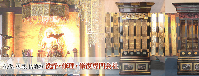 私共は寺院仏具・仏像・銅像・仏壇の清掃洗浄・漆艶出し・修理・修復を専門に行なっております。